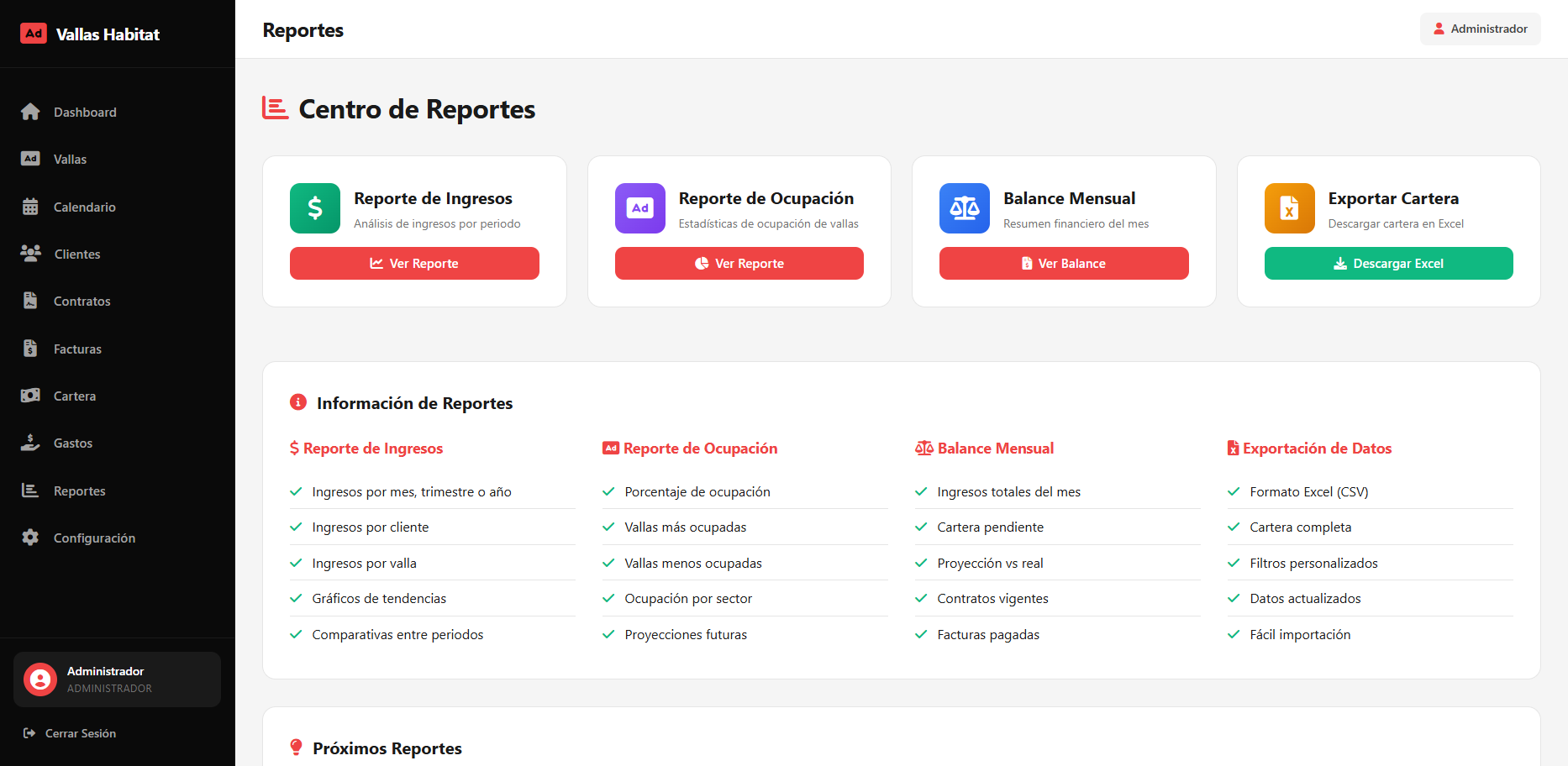 Administra tu negocio de publicidad exterior de forma simple y organizada desde un solo lugar. Este sistema te permite llevar el control completo de tus vallas, clientes, contratos y facturación, evitando errores de doble reserva y automatizando tareas repetitivas como la generación de facturas mensuales. Visualiza fácilmente la disponibilidad de tus espacios publicitarios, da seguimiento a los pagos pendientes y toma mejores decisiones con reportes claros sobre ingresos y ocupación. Ideal para empresas de publicidad exterior, agencias de medios y propietarios de vallas que buscan profesionalizar su operación y ahorrar tiempo.